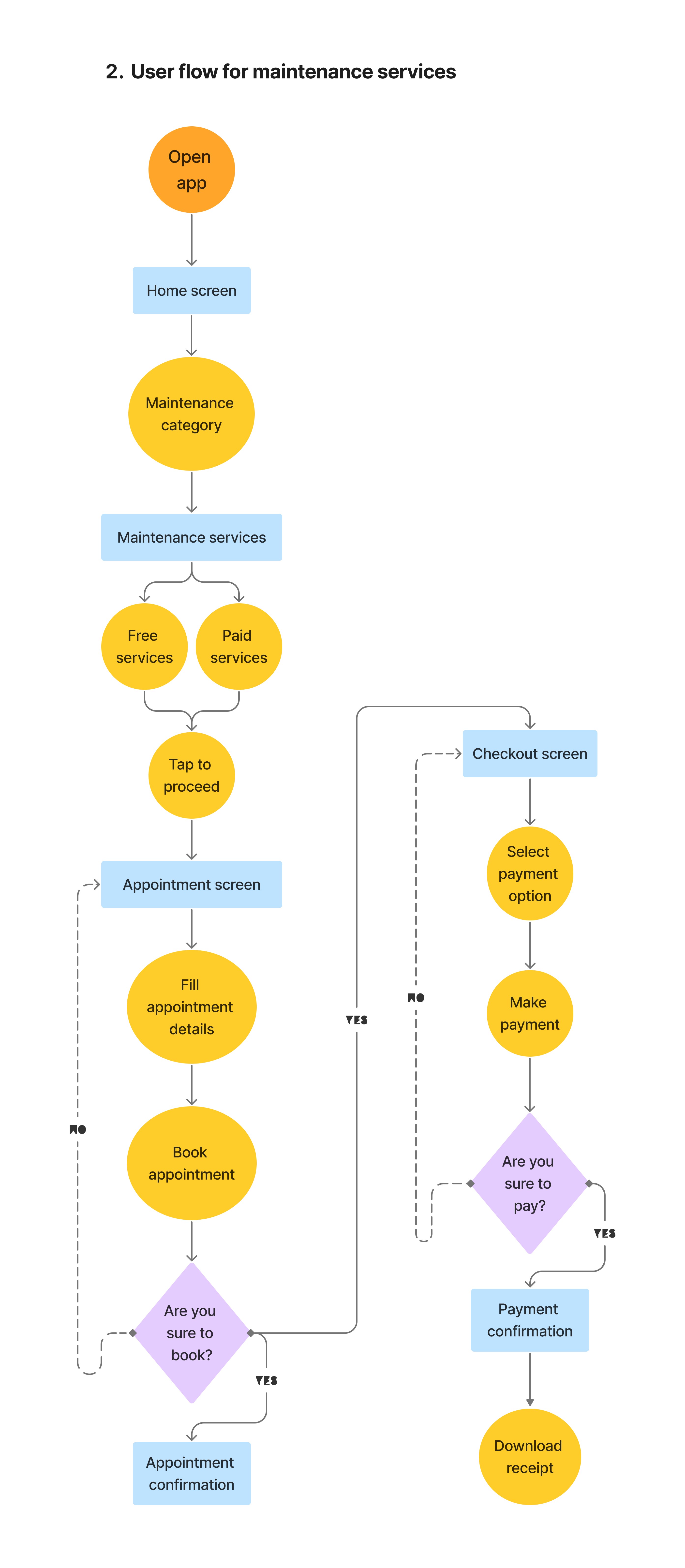 Navigating the digital terrain, I charted two user flows, one for shopping and the other for maintenance service. Each flow was refined to ensure frictionless experience, with a clear path from discovery to delight. Both user flows emerged organically, each step-in user journey seamlessly connected.
