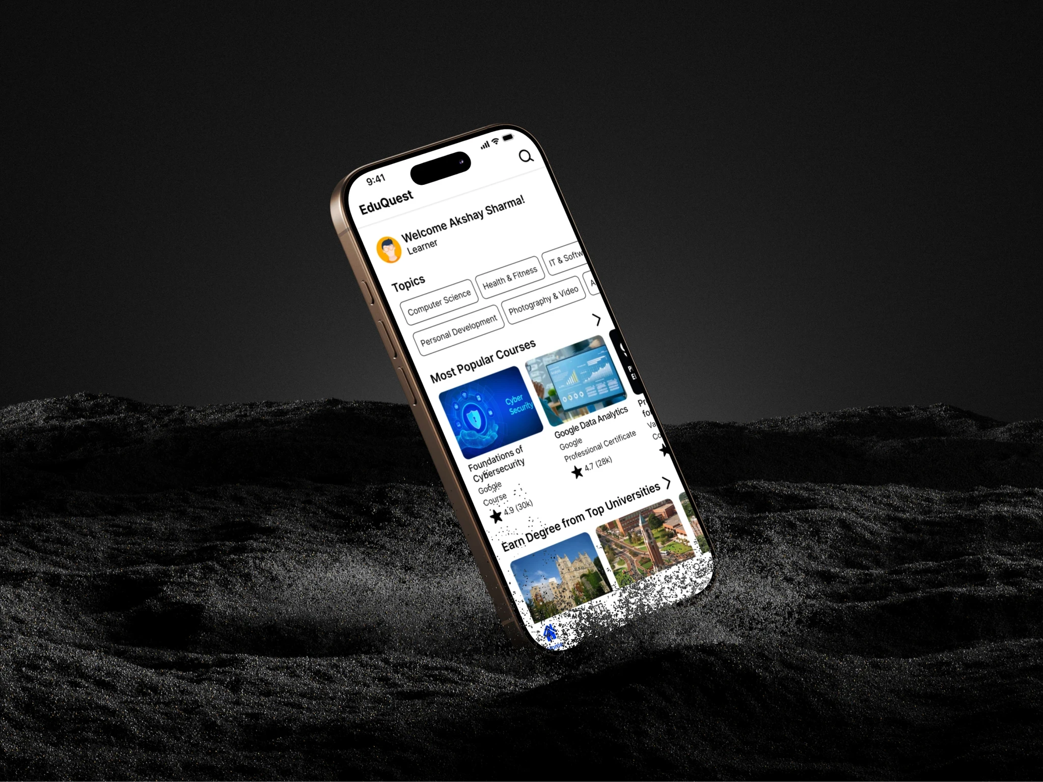 EduQuest is a learning management system (LMS) startup aimed at young professionals seeking to upskill or transition careers. Through market research, EduQuest identified key challenges that their target audience faces, such as time management, maintaining motivation, and selecting the right courses aligned with their career goals. To address these challenges, a UX design solution was required for the platform’s mobile experience, focusing on a user-centric, modern, and intuitive interface.